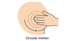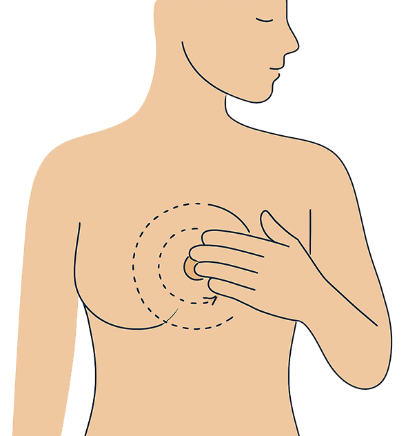 • Use the same circular or vertical strip technique to feel for lumps or thickened areas